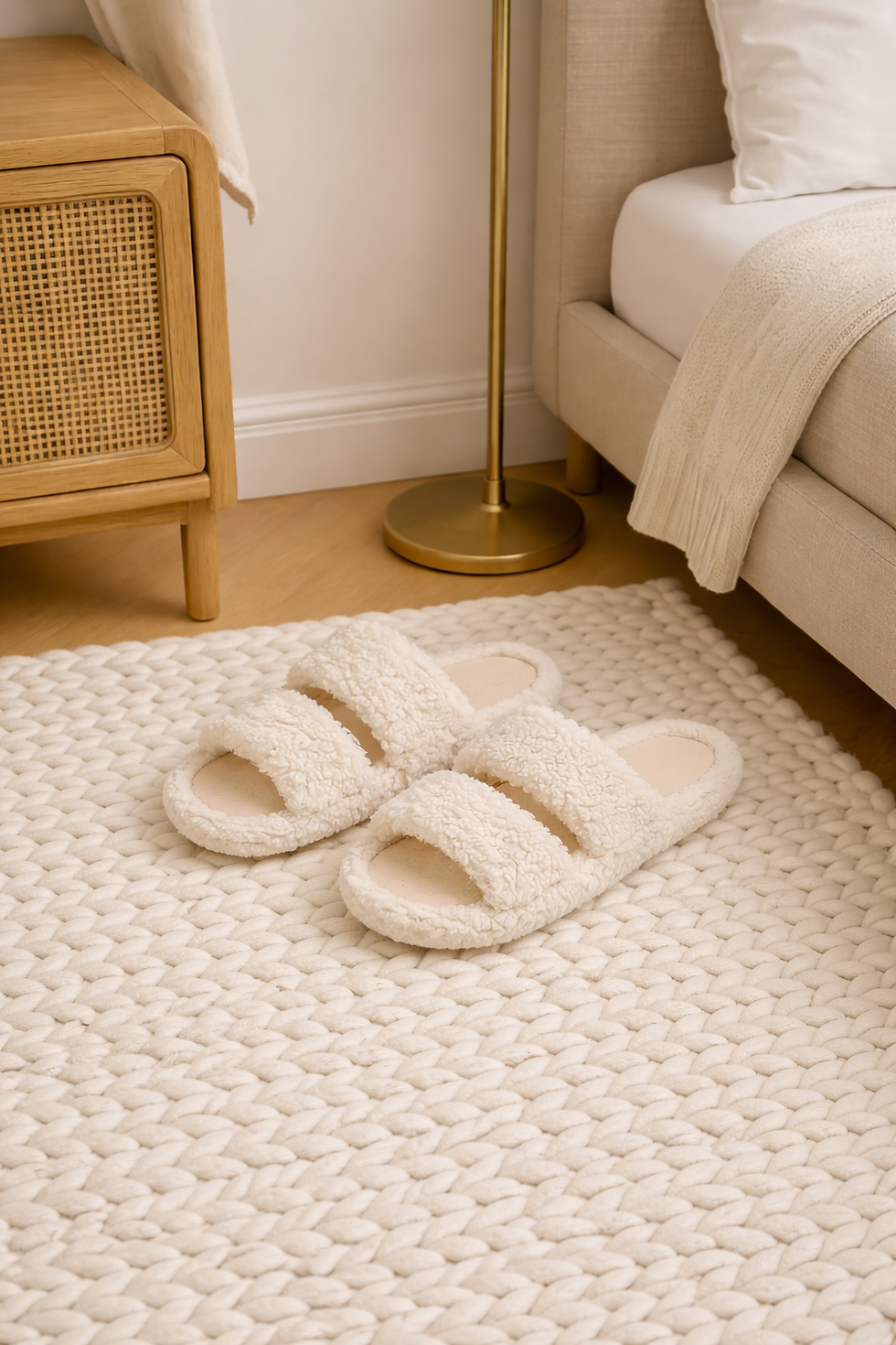 I keep a pair of these plush bedroom slippers by the bed so they're the first thing I reach for - before coffee, before my phone, before the day begins. It's such a small habit, but it makes my mornings feel slower, warmer, and more peaceful.