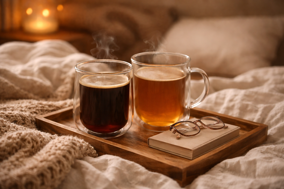 Most mornings, this is exactly how I want to start the day - sitting on the edge of the bed with something warm in my hands, steam rising while the house is still quiet. I love using clear glass mugs because I can actually see the coffee or tea inside, and for some reason that tiny detail makes the moment feel more intentional.