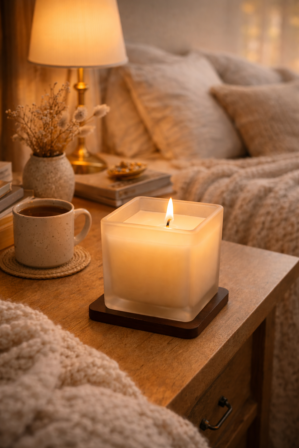 🕯️ 5. Add Cozy Warmth with Candles and Blankets